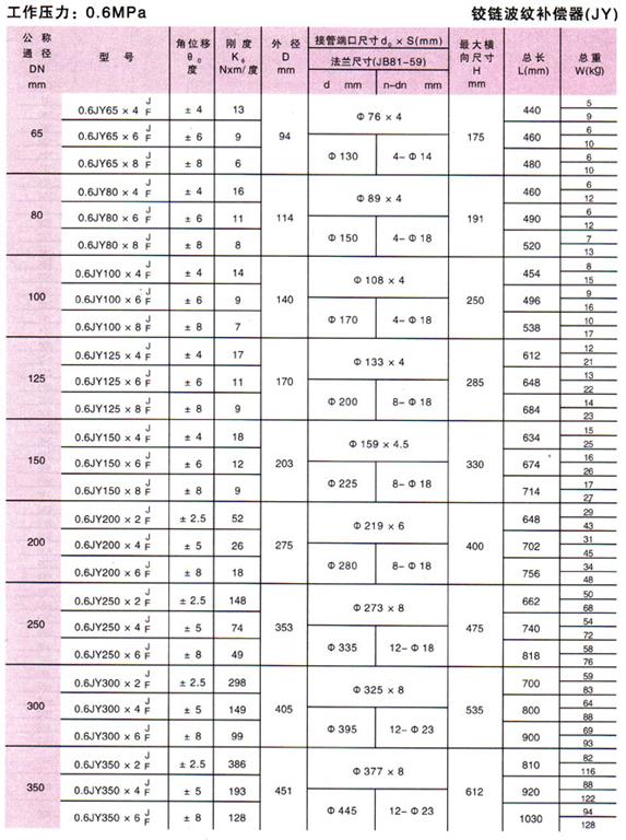 鉸鏈波紋補(bǔ)償器(JY)參數(shù)1