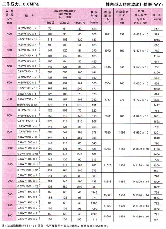 無約束波紋補(bǔ)償器(WY)參數(shù)2