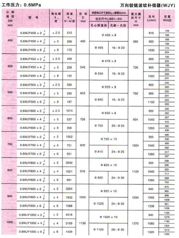萬向鉸鏈波紋補償器(WJY)參數(shù)2