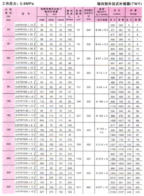 軸向型外壓式波紋補(bǔ)償器(TWY)參數(shù)1