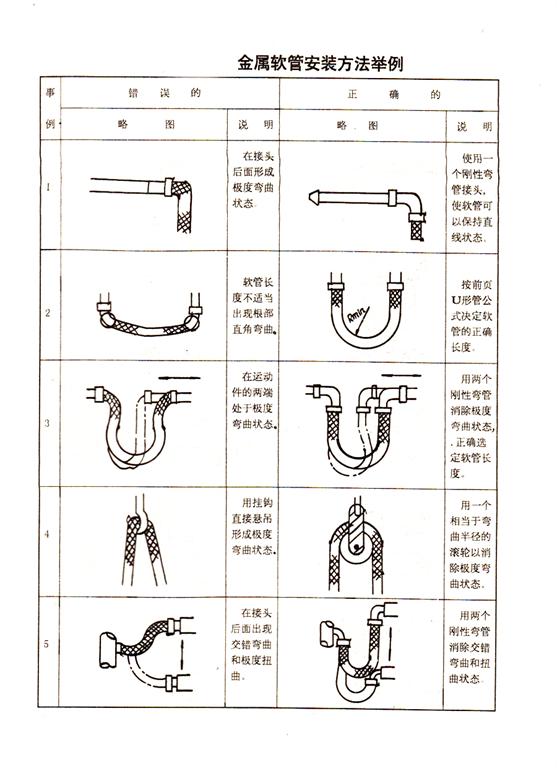 (3)在安裝時金屬軟管需防止焊接時飛濺物燙傷和機(jī)械性損傷,否則會造成泄漏。