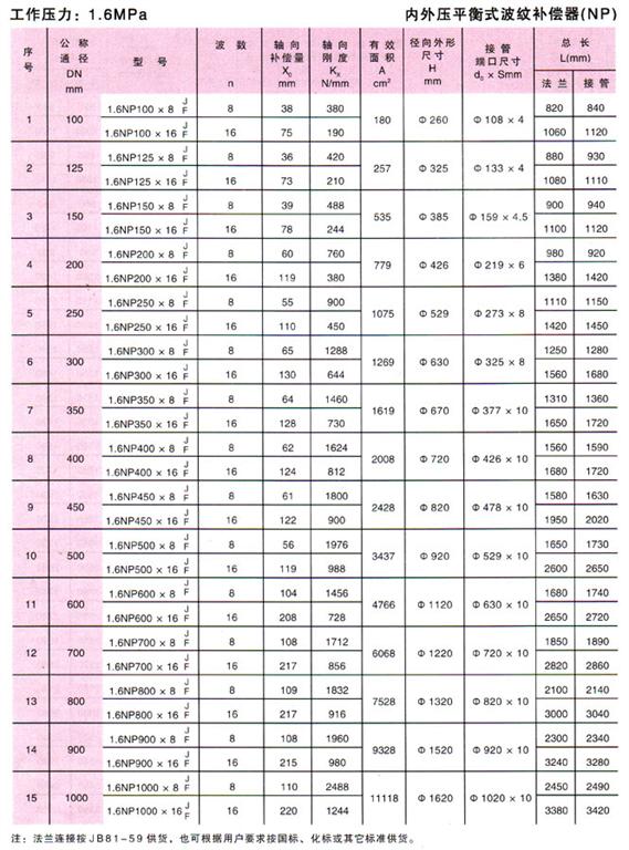 內(nèi)外壓力平衡式波紋補償器(NP)參數(shù)2