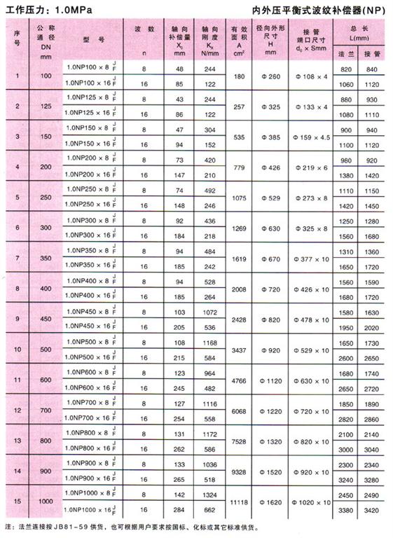 內(nèi)外壓力平衡式波紋補(bǔ)償器(NP)參數(shù)1