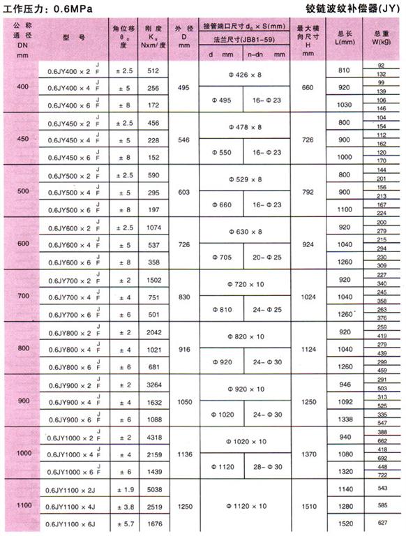 鉸鏈波紋補(bǔ)償器(JY)參數(shù)2