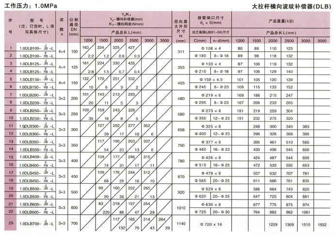 大拉桿橫向波紋補償器(DLB)參數(shù)3