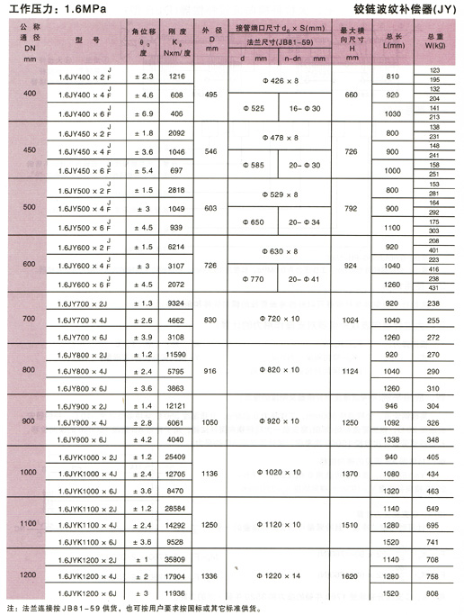 鉸鏈波紋補償器(JY)參數7