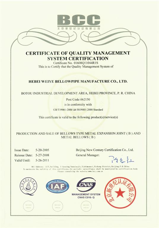 百順牌波紋管補償器品質(zhì)可靠,壽命長、結(jié)構(gòu)緊湊、安全可靠、互換性好。偉業(yè)網(wǎng)絡(luò)編輯為您介紹一下百順牌波紋管補償器的主要資質(zhì)